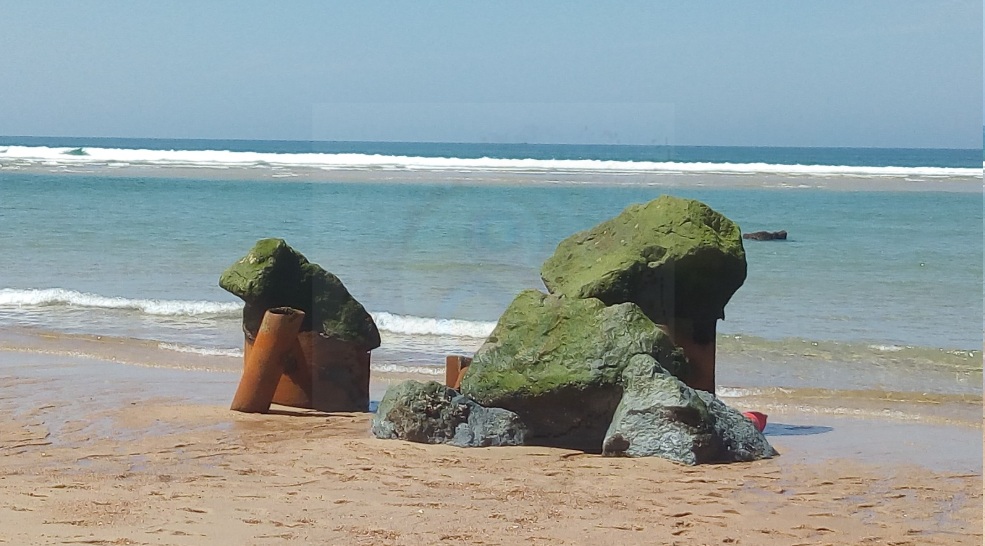 Sur la plage de Santocha, Les blocos (que tu découvriras plus tard) sont des vestiges de la Seconde Guerre mondiale.